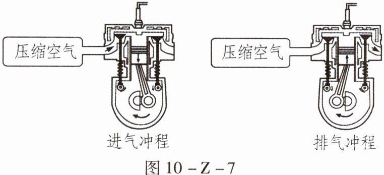 17. 为制造空气动力汽车,工程师将装有压缩空气的钢瓶与空气动力发动机连接起来,该发动机的一个工作循环分为进气冲程和排气冲程,如图10 - Z - 7所示。发动机对外做功的是