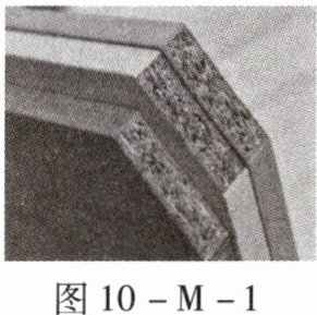 1. 家庭装修时常使用的实木颗粒板是由木材碎块和木纤维混合黏合剂合成的人造板,如图 10 - M - 1 所示。使用黏合剂可以将木材碎块粘在一起,这利用了分子之间存在着相互作用的