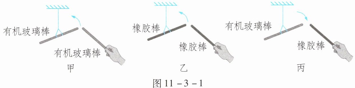 7. 某兴趣小组做“探究电荷间相互作用的规律”实验,实验现象如图 11 - 3 - 1 所示。