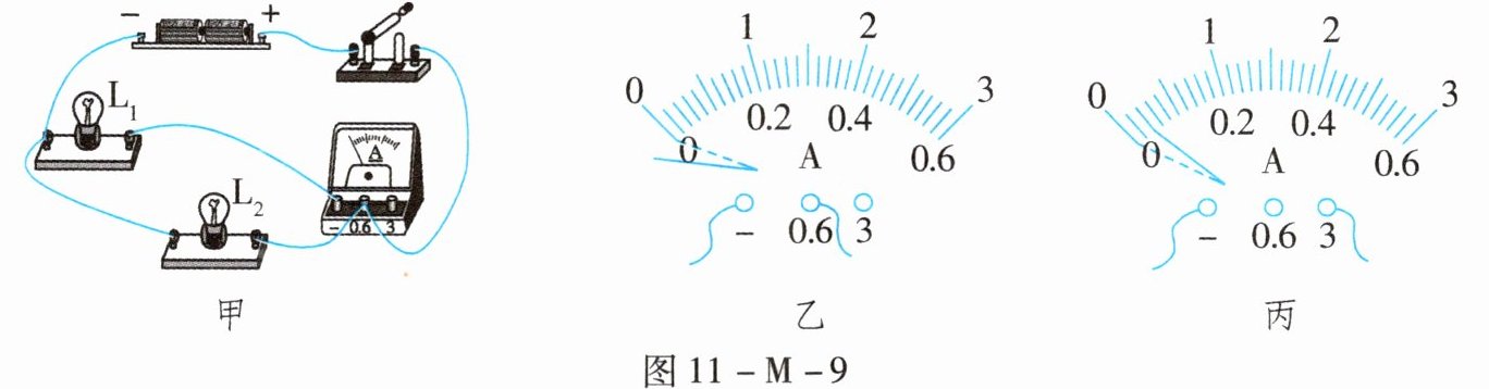 (3)闭合开关,电流表出现如图 11 - M - 9 乙所示的现象,造成电流表出现该现象的原因可能是