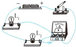 猜想②:电流从电源的正极流出后先通过灯泡 $ L_{1} $,再通过灯泡 $ L_{2} $,通过灯泡 $ L_{1} $ 的电流比通过灯泡 $ L_{2} $ 的电流大,所以灯泡 $ L_{1} $ 更亮。