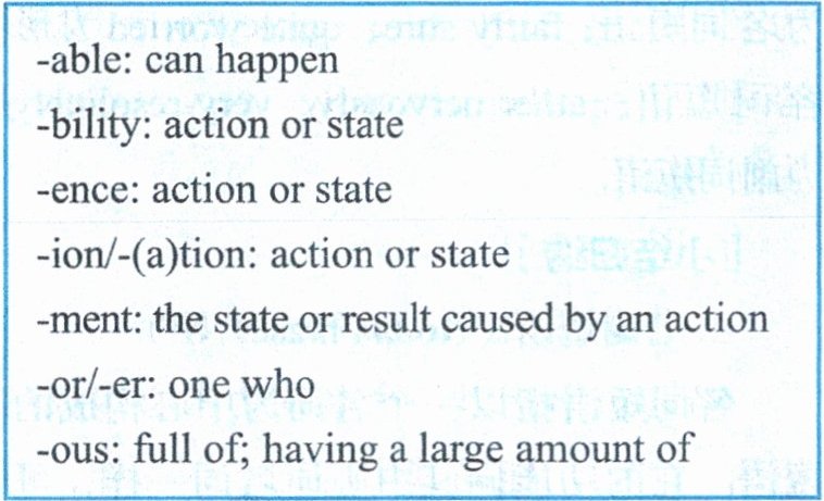 2. Complete the sentences with the correct forms of the given words, using the proper suffixes from the box.