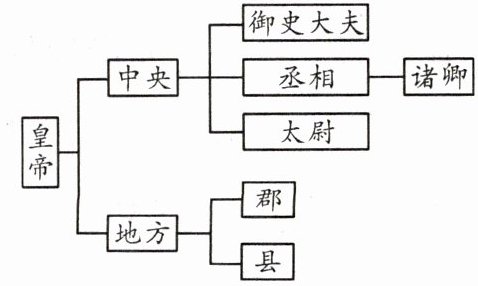 (3)在中央:皇帝之下设有丞相、太尉、御史大夫,分管行政、军事和监察事务,最后由皇帝决断;在地方:实行郡县制。