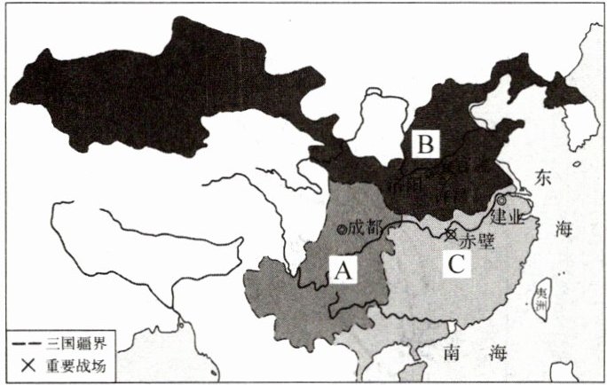 (3)A:蜀国;B:魏国;C:吴国。