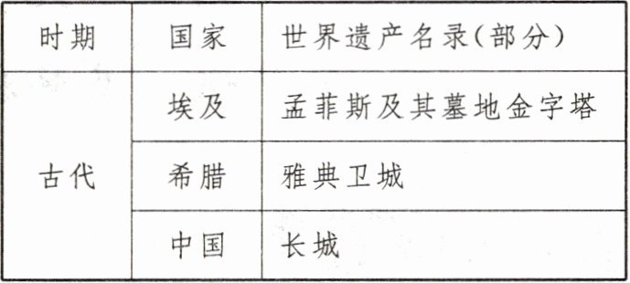 (2)据探究二提供的世界遗产名录和所学知识,任选一项遗产说明它们被列入《世界遗产名录》的理由。