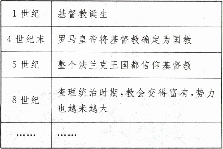 (1)基督教的兴起与传播。(言之有理即可)(2)克洛维统治时期。措施:把原属罗马国有的土地和无主土地赐给教会,从而获得了教会的支持。(3)查理继续实行鼓励基督教发展的政策,把王国划分为很多教区,征收“什一税”等。