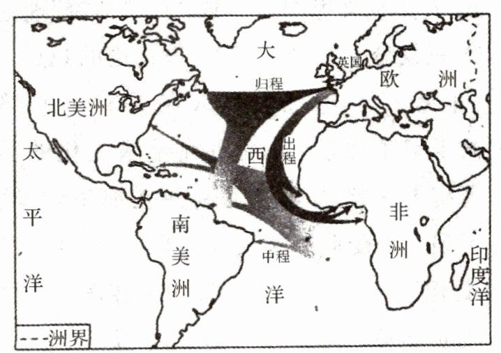 (2)①给非洲人民带来了深重的灾难。②欧洲文化传到非洲,对非洲社会的发展产生了深远的影响。③给美洲地区的开发提供了大量廉价劳动力。④客观上有助于欧洲殖民国家的资本原始积累,有助于世界市场逐渐形成。