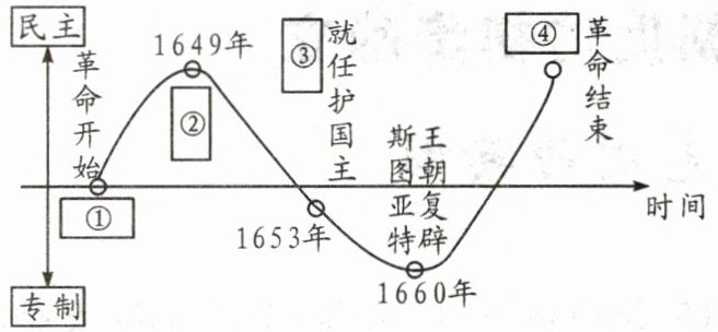(2)①1640 年。②查理一世被推上断头台。③克伦威尔。④1688 年。