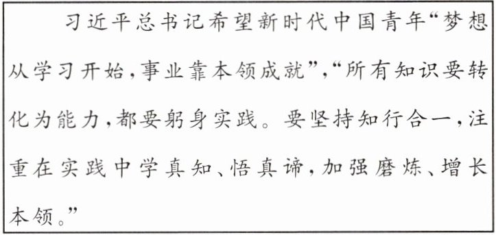 (2)答:①我们要发现并保持对学习的兴趣,更加自觉、主动地学习。②养成良好的学习习惯,掌握科学的学习方法,提高学习效率。③积极参加社会实践活动,到社会大课堂去读好“无字之书”,获得更多的启迪。④我们应学以致用、开拓进取、勇于创新,运用所学知识帮助他人、服务社会,为实现中华民族伟大复兴的中国梦贡献力量。