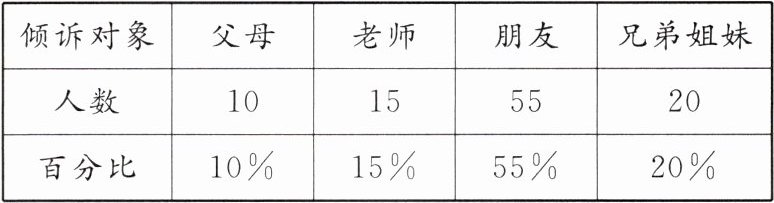 7. 山西省某中学七年级开展了“当有烦心事,你会向谁倾诉?”的问卷调查,调查结果如下。你从下表数据中得出的结论是(