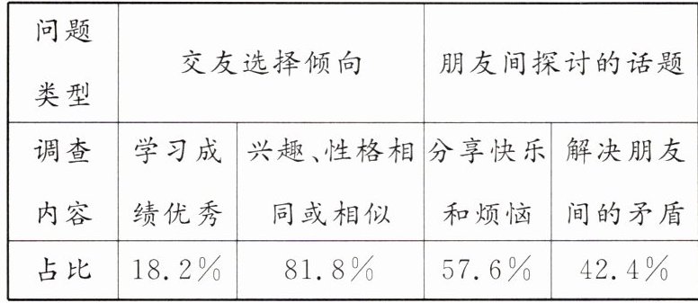 8. 下表是对学生交友问题的调查数据统计,下面对表格中的信息解读正确的是(