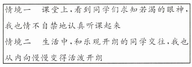 (2)答:①集体生活能带给我们温暖,让我们获得安全感和归属感。②有助于我们学会与人交往。③有助于培养我们的责任感。④有助于我们发展个性。⑤集体是我们共同成长的园地。