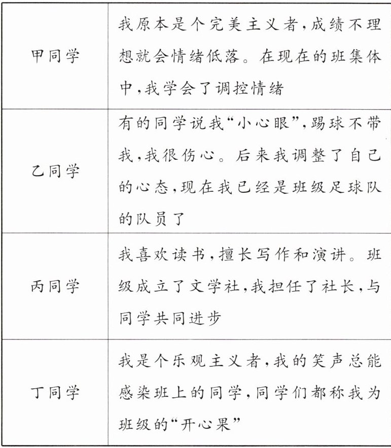 8. 在“集体生活成就我”主题班会上,同学们分享了自己的集体生活经历。