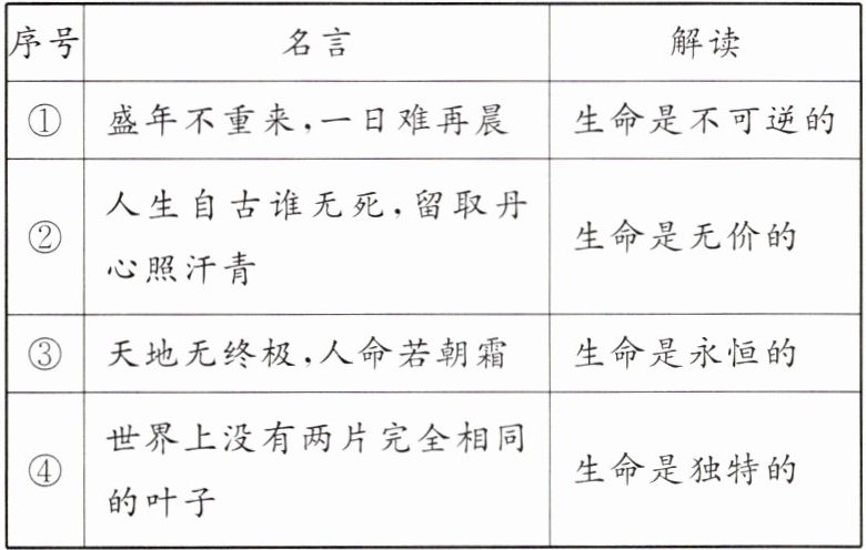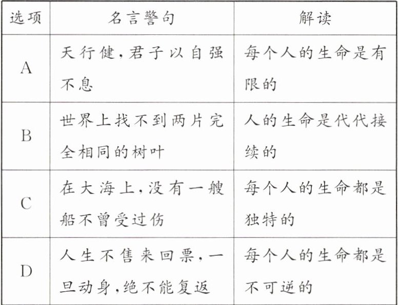 2. 为帮助同学们更好地认识生命的特点,老师引用了相关名言。下列对名言的解读正确的有(