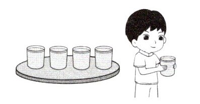 算式表示:原来有5个杯子,拿走了1个,还剩4个。