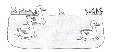 $3 - 1$ 的算式表示:原来有3只鸭子,游走了1只,还剩2只。