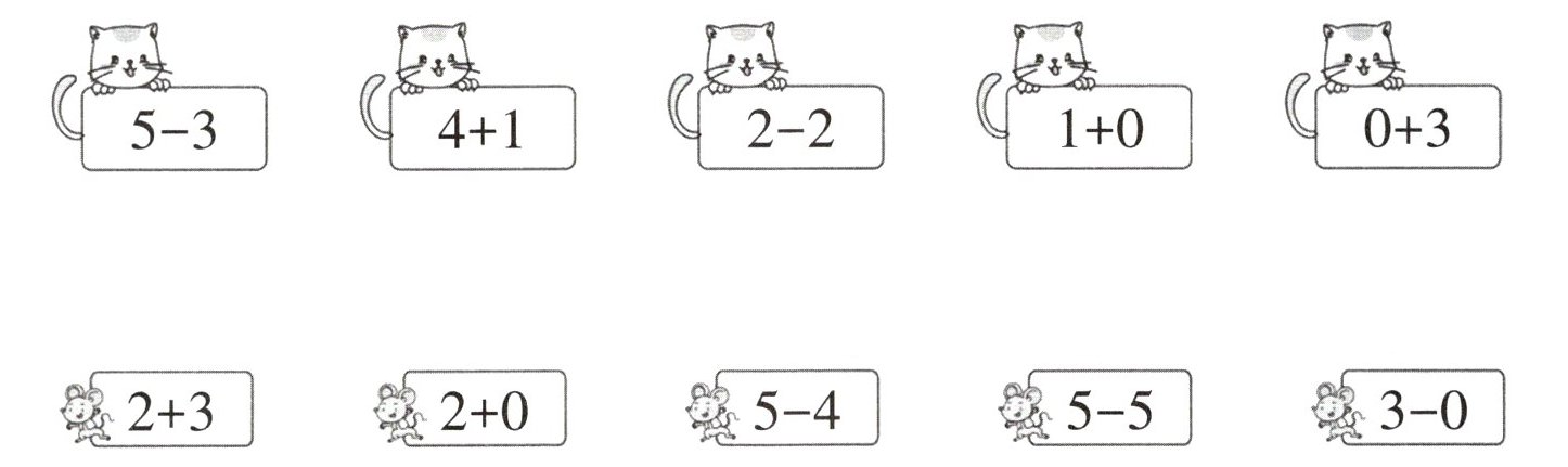 九、两人为一组,一人说5以内的加减法算式,一人说得数。比一比,看谁算得又对又快。(给你的表现打个分吧)