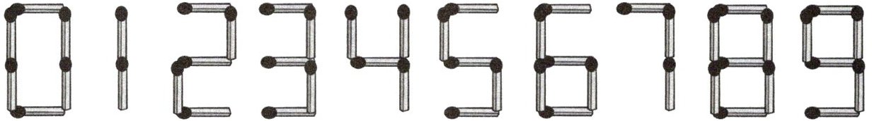 1. 这些数字分别是由几根火柴棒拼成的?按顺序写下来。