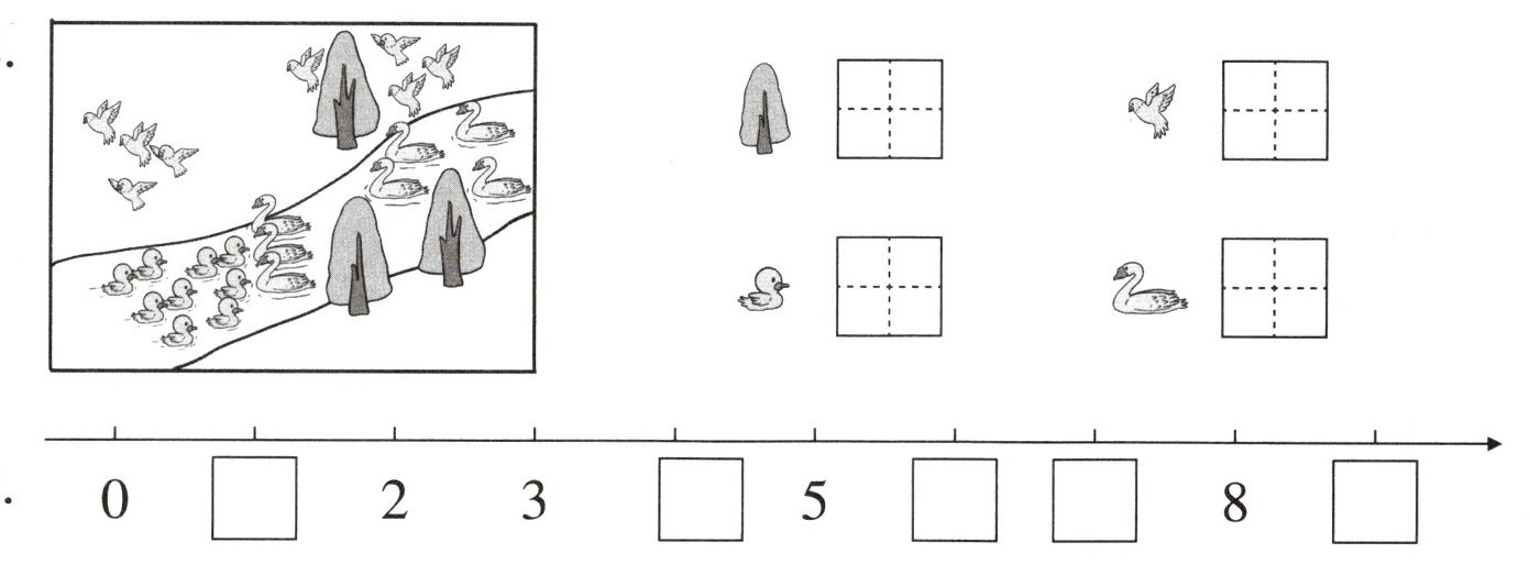 (2)上面这些数中,比4大、比7小的数是( ),比5小的数有( )个。