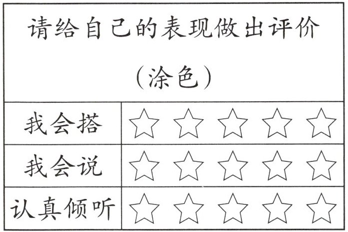 认真倾听:根据实际倾听情况涂色,假设全部完成涂满五颗☆。