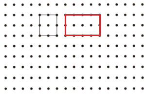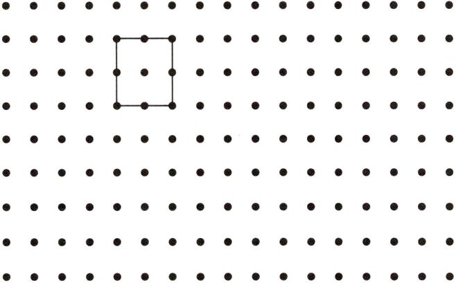 2. 东东在钉子板上围了一块“草地”。你能围出和这一块大小不一样的“草地”吗?比一比,说一说,哪一块更大?