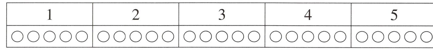 | ●○○○○(涂1个○为●) | ●●○○○(涂2个○为●) | ●●●○○(涂3个○为●) | ●●●●○(涂4个○为●) | ●●●●●(涂5个○为●) |