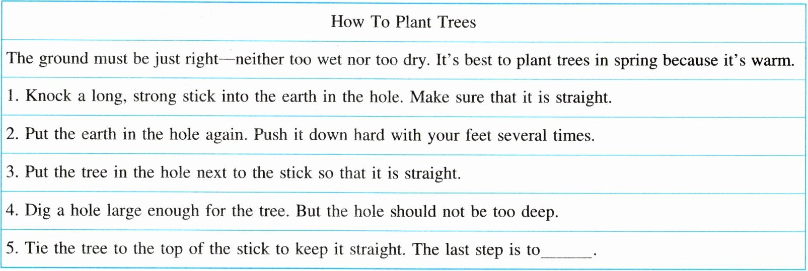 ) 4. To make the young tree straight, we should______.A. make sure that the stick is straight when we knock it into the earth