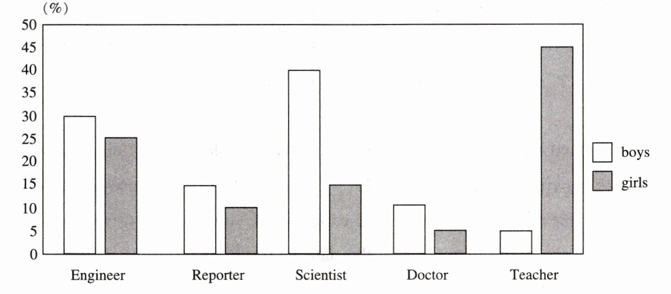 Many students have clear ideas about what jobs they would like to have when they grow up. We think boys and girls choose jobs differently. To find out how differently they choose their jobs, we did a survey in New Hope Middle School. The following shows the result of the survey.