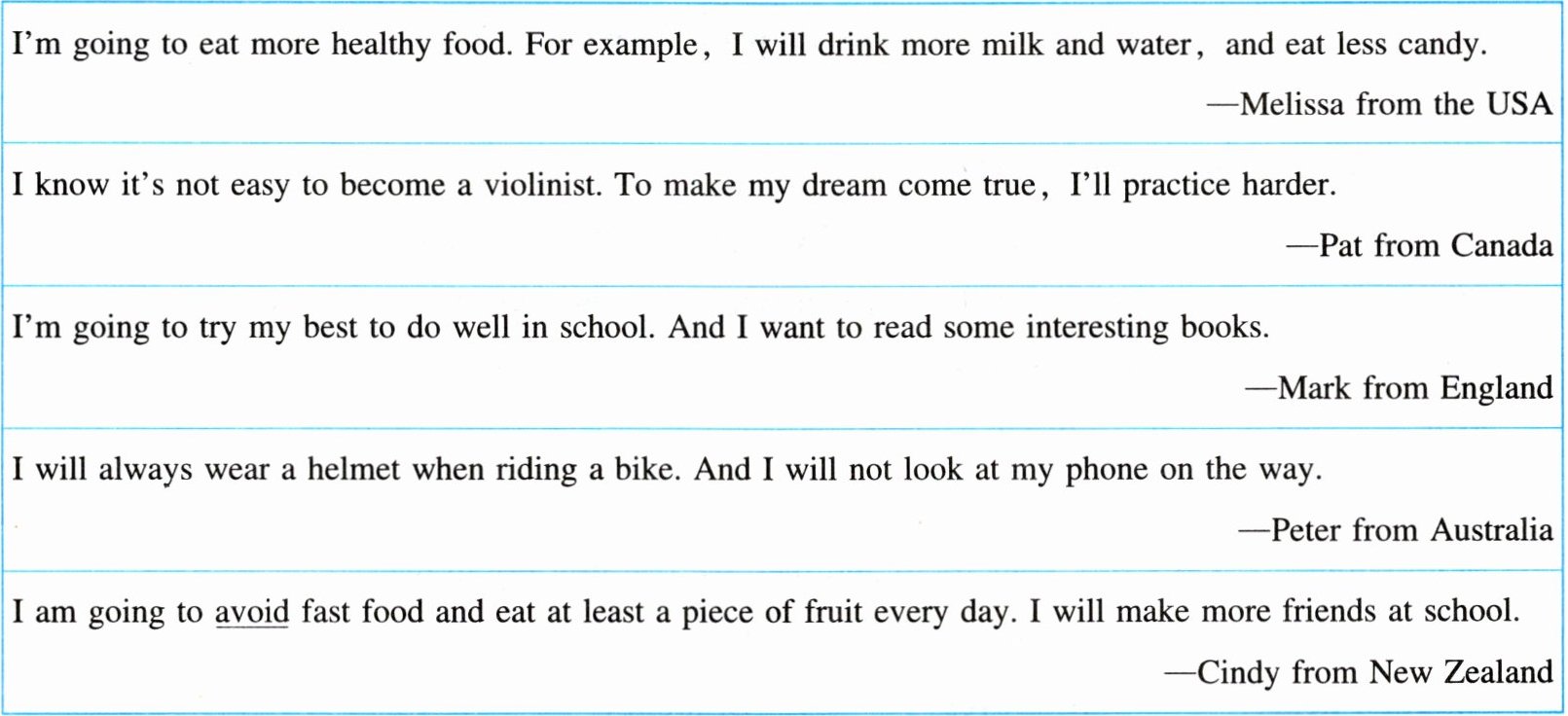 Next year I am going to take a long vacation. I’m going to visit my grandparents in New York. And I am going to study harder at school. I’m not good at some of my subjects. 3.