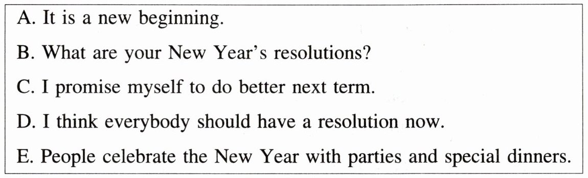 . The New Year is also a great time to make plans and resolutions. A New Year’s resolution is a promise that you make to yourself on the first day of the year. 2. A