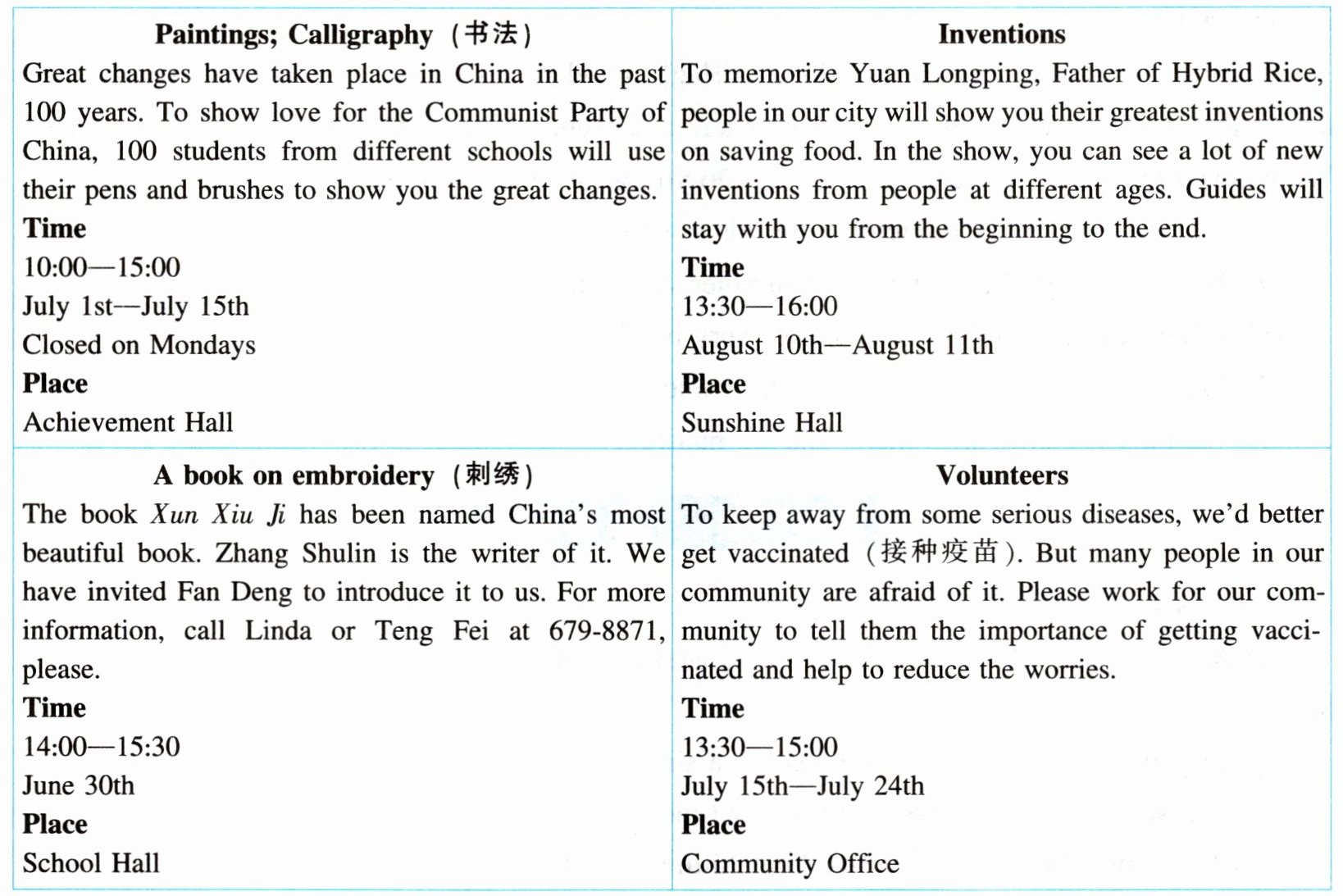) 1. Who will introduce the book *Xun Xiu Ji* to you on June 30th?A. Zhang Shulin.