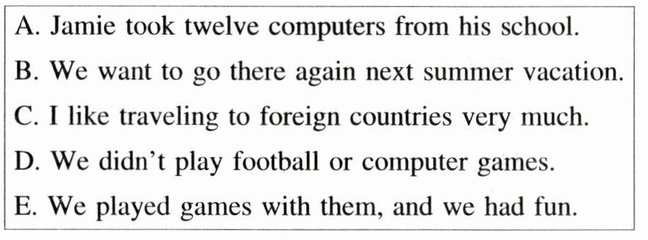 3. ____ These computers were not very new but they were still useful. So Jamie's school decided to give them to the village school. In the village, there were only two computers for over 300 children.