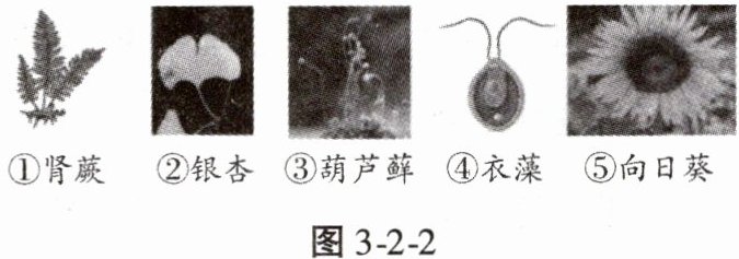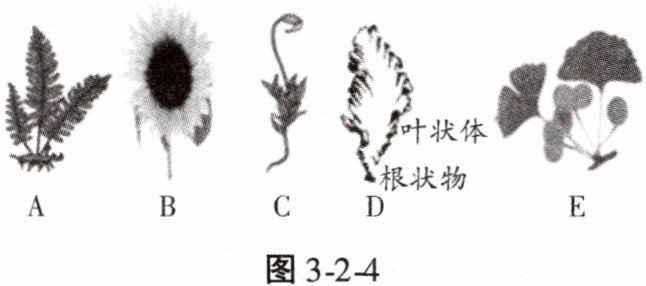 11. 【核心素养·生命观念】图3-2-4表示五种形态结构和生活环境各异的生物,它们代表了不同的生物类群,请分析并回答下列问题:
