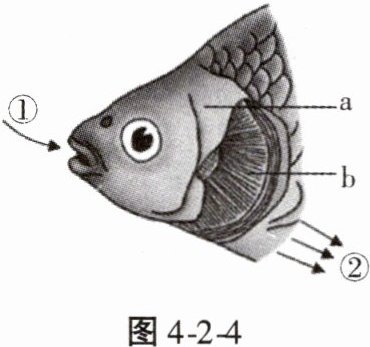 10. 图4-2-4是鱼在水中呼吸的示意图,a和b代表结构,①和②代表水。下列相关叙述错误的是 (
