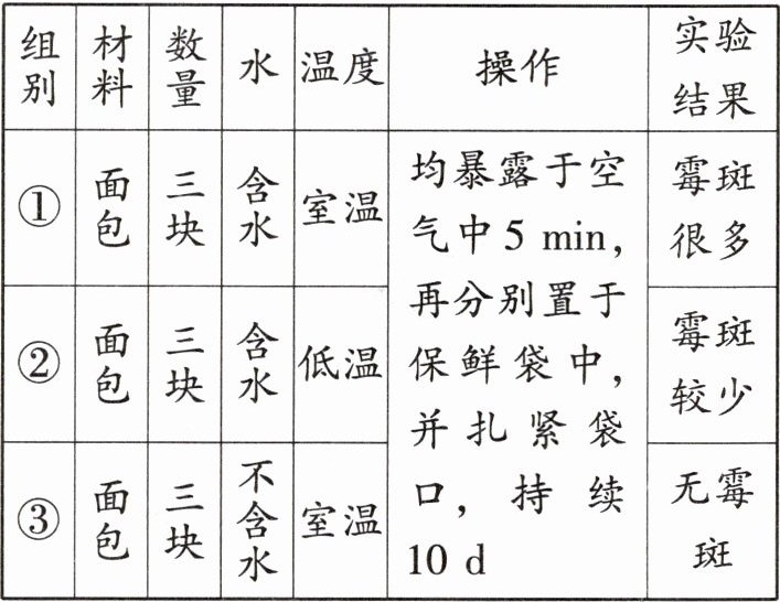 。(3) 与①组相比,②组面包霉斑较少的原因是