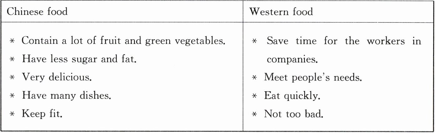 I prefer Chinese food to Western food. First of all, I'm a Chinese and Chinese food can keep us healthy. Besides, Western food is high in fat, sugar and salt. If we eat too much and don't take enough exercise, we'll get fat easily. What's more, Western food is too expensive and is not worth the money.