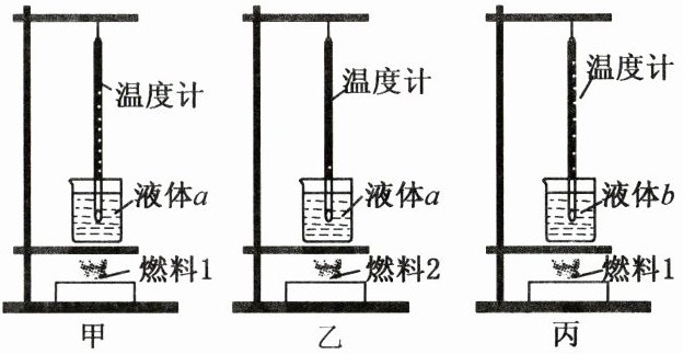 9. 如图所示,甲、乙、丙三图中的装置完全相同.燃料的质量相同,烧杯内的液体质量也相同.下列说法正确的是(