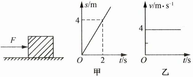 10. 物体在水平地面上做直线运动,当物体运动的路程和时间图象如图甲时,受到的水平推力为$F_{1}$;当物体运动的速度和时间图象如图乙时,受到的水平推力为$F_{2}$.两次推力的功率分别为$P_{1}$、$P_{2}$,则下列关系正确的是(