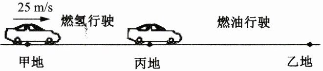 阶段二:从丙地开始,由于氢气不足,小华切换汽油为燃料,轿车仍以$25\space m/s$的速度匀速行驶,此过程中发动机的效率为$30\%$.