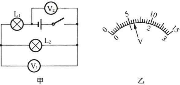 20. (8分)如图甲所示的电路中,当闭合开关后,两个电压表的指针均为图乙所示,求: