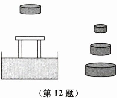 12. 在模拟打桩的实验中,让“重锤”(铁块)从“桩”(小桌)的正上方的某一高度处自由下落,将“桩”打入沙中。