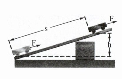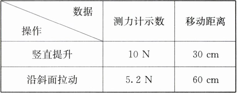 10. 在图中,$s = 60cm$,与之对应的$h = 30cm$。现用弹簧测力计进行两次操作:(1)沿竖直方向匀速提升小车;(2)沿斜面方向匀速拉动小车。记录数据如下表。分析数据有如下一些发现。其中,具有较高水平的发现是(