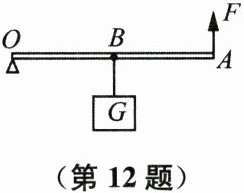 12. 如图轻质杠杆OBA可绕O点转动.杠杆长0.2m,在它的中点B处挂一重30N的物体G,若在杠杆上A端施加竖直向上的力F,使杠杆在水平位置平衡,力F大小为