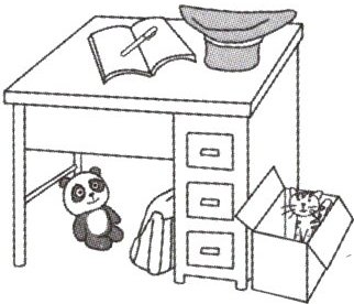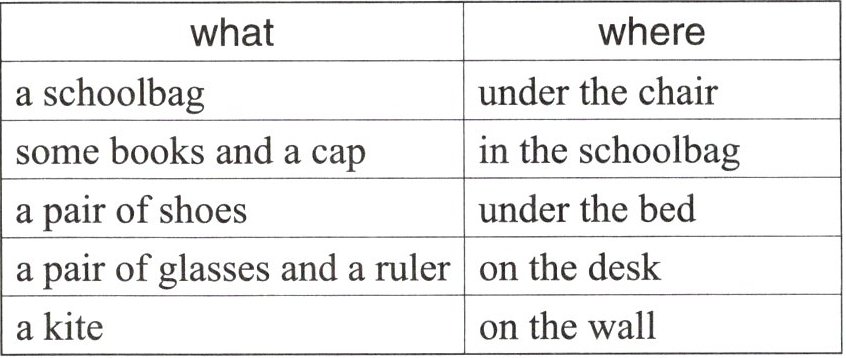 is under the bed. What’s on the desk? A pair of glasses and a ruler 5. are on