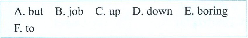 A. but B. job C. up D. down E. boring F. to