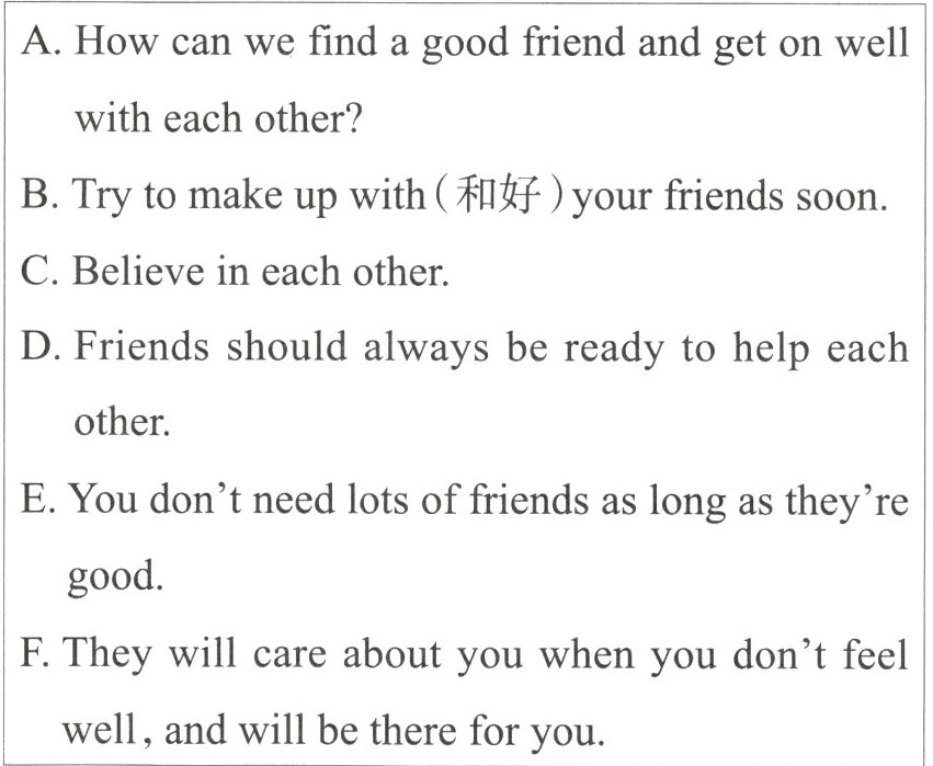 Everyone needs friends. Friendship can make us happier. ____2____ Here is some advice.