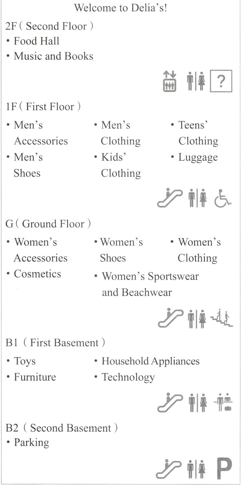 话题:百货商店指南 难度:★★★ 建议用时:6’