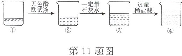 11. 已知①中盛有一定量的碳酸钠溶液,根据如图所示的实验过程,下列说法正确的是 (