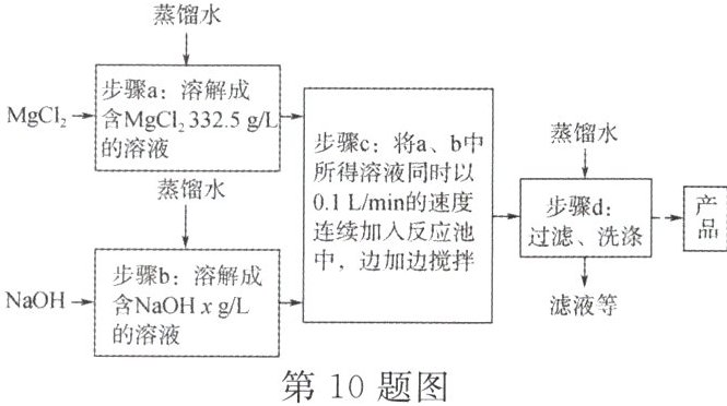 10. 一种制备氢氧化镁的生产流程如图所示,$ {MgCl_{2}} $和$ {NaOH} $按恰好完全反应的比例加料。
