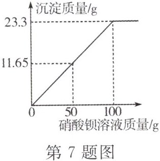 (3)同学们进一步了解到该废水中只含有一种酸,为测定其所含酸的质量分数,取该废水 $200\mathrm{g}$ 于烧杯中,逐滴加入硝酸钡溶液,生成的沉淀质量与加入硝酸钡溶液的质量关系如图所示(假设该废水中的其他物质均溶于水且不与硝酸钡溶液反应)。